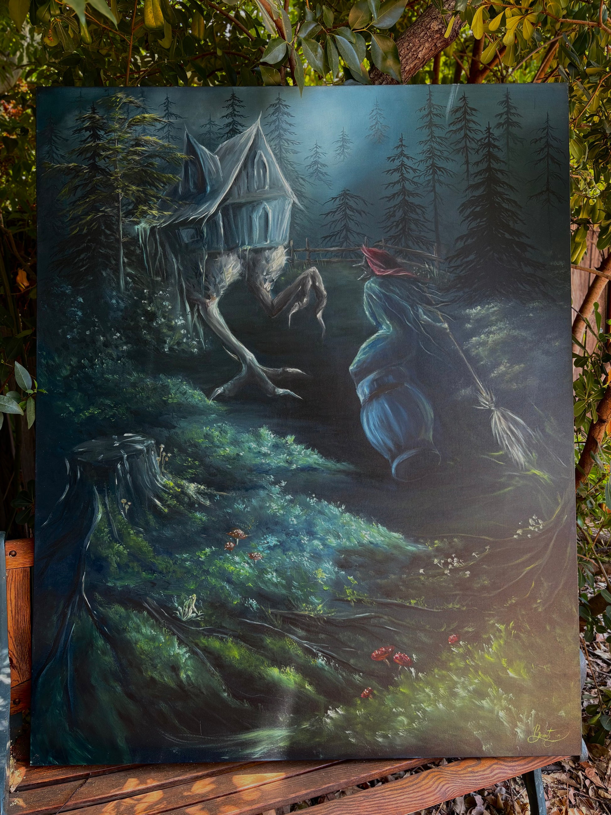 I first painted her as a child, barefoot in my family’s home, enchanted by the strange magic of her moving house. Soviet cartoons made her funny, spooky, but somehow familiar. I always felt close to her, like we shared something.